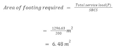 - First of all the required area of footing is determined by using formula (Area = Load/Safe bearing capacity of Soil).